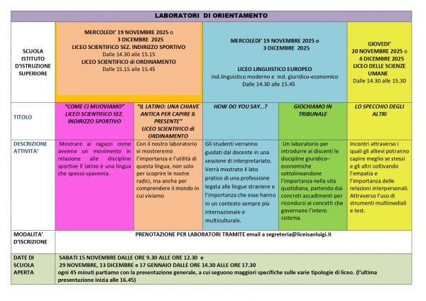 Ecco le date di SCUOLA APERTA A.S.26/27