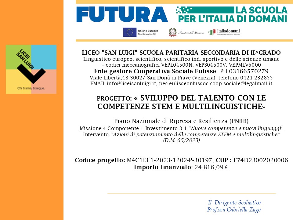PROGETTO: « SVILUPPO DEL TALENTO CON LE COMPETENZE STEM E MULTILINGUISTICHE»